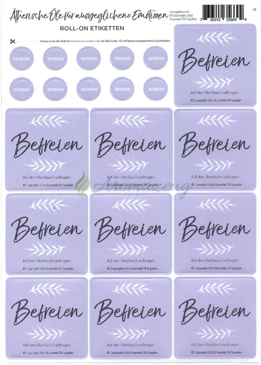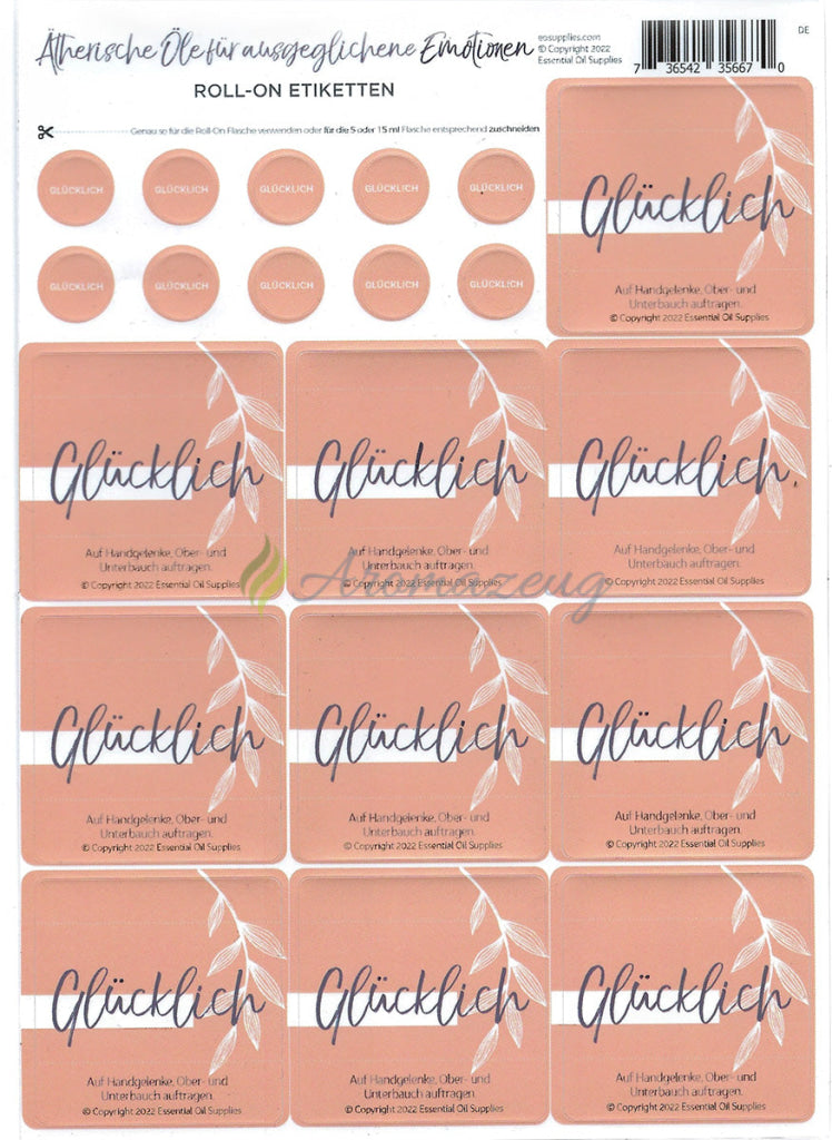 Zusätzliche Aufkleber für Ätherische Öle für ausgeglichene Emotionen