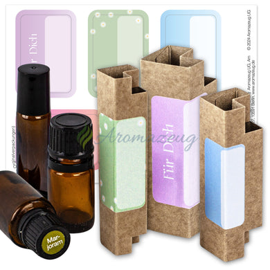 Mit diesen schönen Geschenkaufklebern können Sie die Öl-Originalverpackungen ästhetisch aufwerten und sie als nachhaltige Geschenkboxen wiederverwenden.