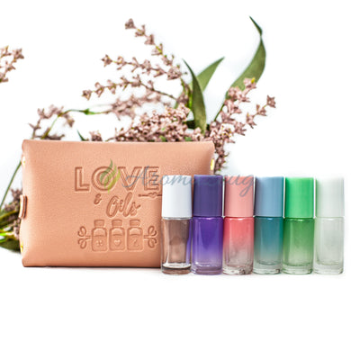 Diese stilvolle Tasche ist nicht nur ein echter Hingucker, sondern auch perfekt für unterwegs: Sie bietet Platz für 6 x 5ml Roll-On Flaschen und schützt die Flaschen sicher und elegant.