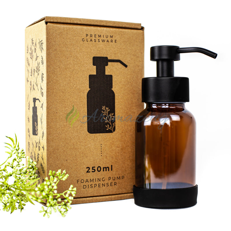 Schäumender Seifenspender aus Braunglas in 250 ml Größe
