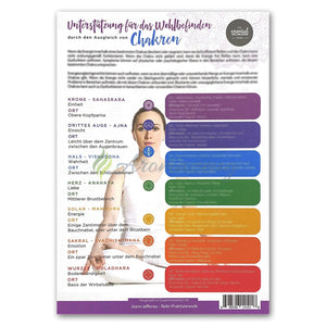 Die andere Seite erklärt das Klären und Ausbalancieren der Chakren: Unteraktiv, Ausgeglichen, Überaktiv—und begleitende körperliche Symptome. Außerdem ist ein Rezept für eine Mischung aufgeführt, um jedes Chakra ins Gleichgewicht zu bringen.