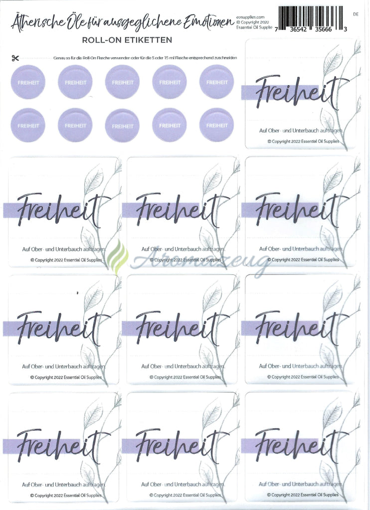 Zusätzliche Aufkleber für Ätherische Öle für ausgeglichene Emotionen