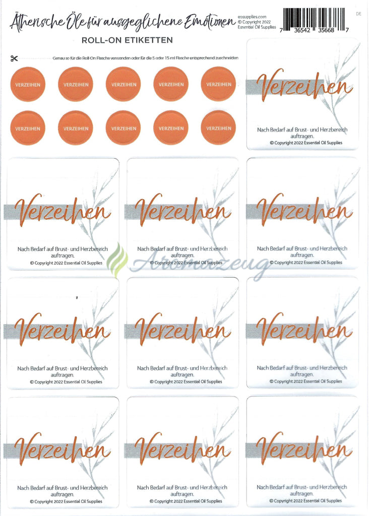 Die Aufkleber sind passend für 10ml Roll-On Flaschen und Sprühflaschen ab 30ml.